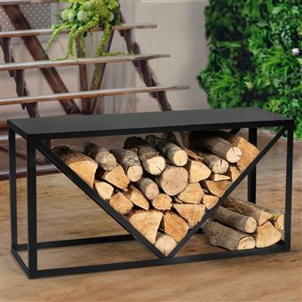 Range Bûches Vertical IDMarket - 112 Cm Hauteur, Acier Noir Avec Plateau 33x33 Cm