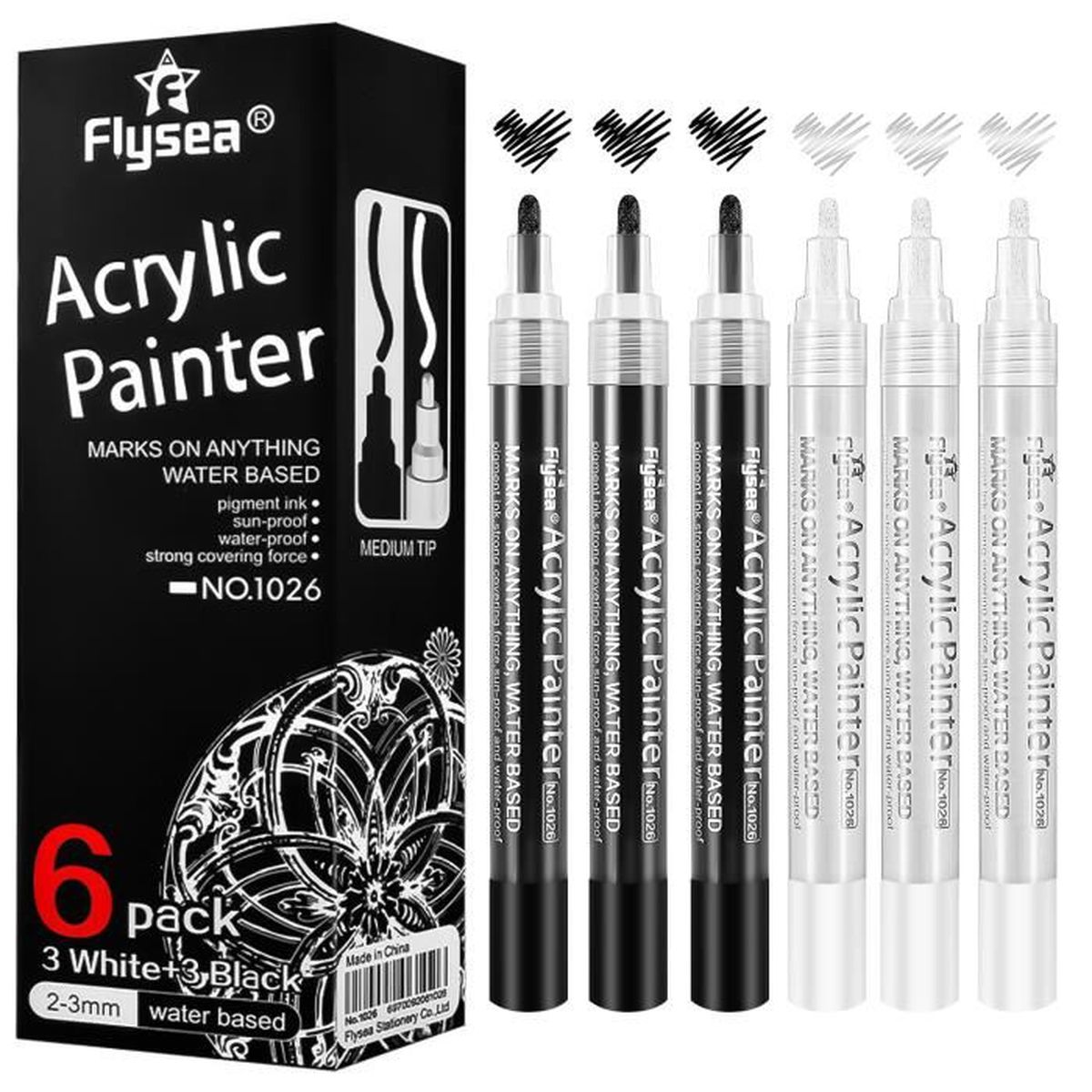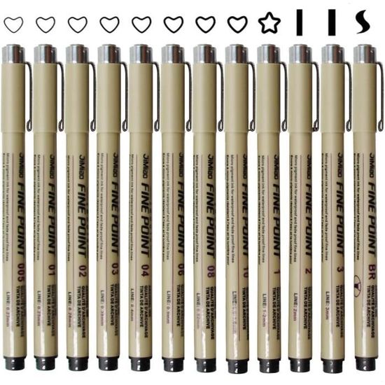 Lot De 12 Feutres Acryliques Rizthyn - Pointe Fine 0.2mm à 3mm - Encre Noire Indélébile - Parfait Dessin Et Illustration