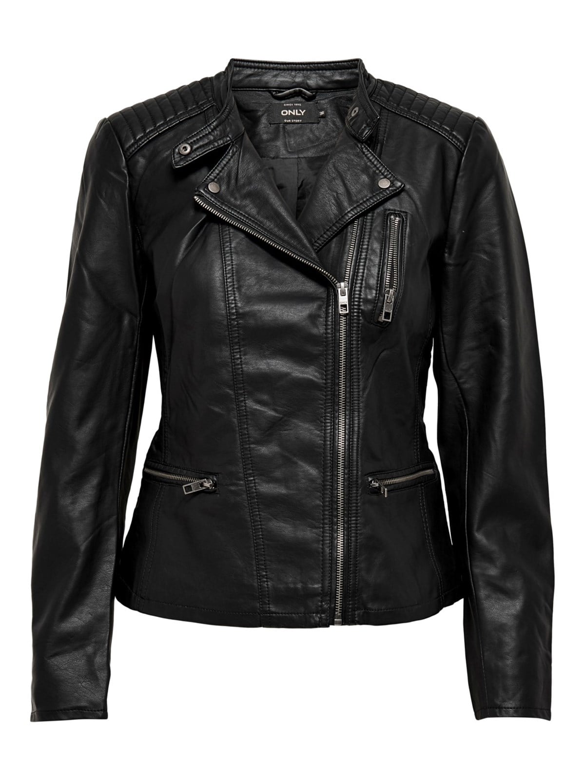 Veste Motarde En Similicuir ONLY - Style Biker, Col à Revers, Matelassée, Pour Femme