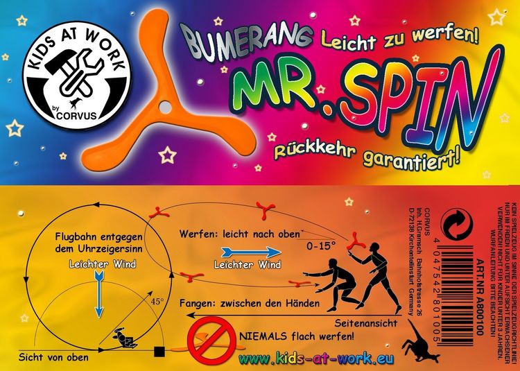 Boomerang Mr. Spin - Jouet Extérieur Multicolore Fabriqué En Allemagne