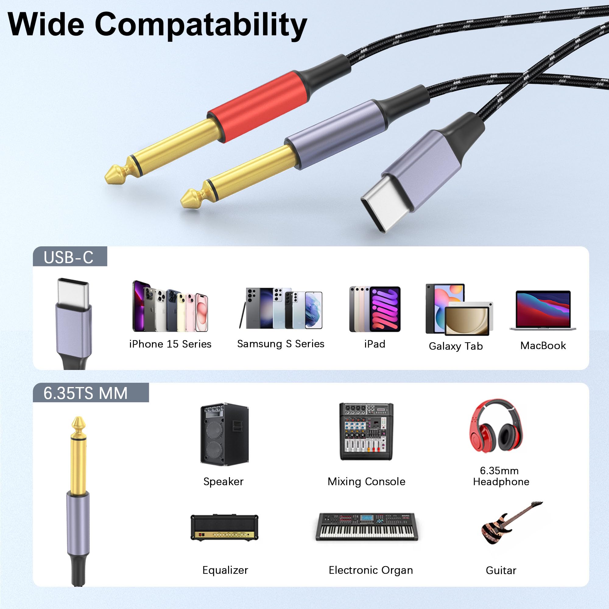 DCNETWORK Splitter Audio Double TS 6,35 Mm - Câble 3 En 1 Vers Double Sortie (Smartphone, PC, Ampli)