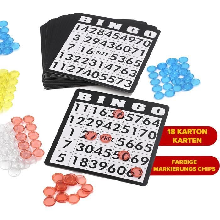 Jeu Bingo Complet - Tambour Métal 75 Boules - 18 Cartes + 150 Jetons - Version Française