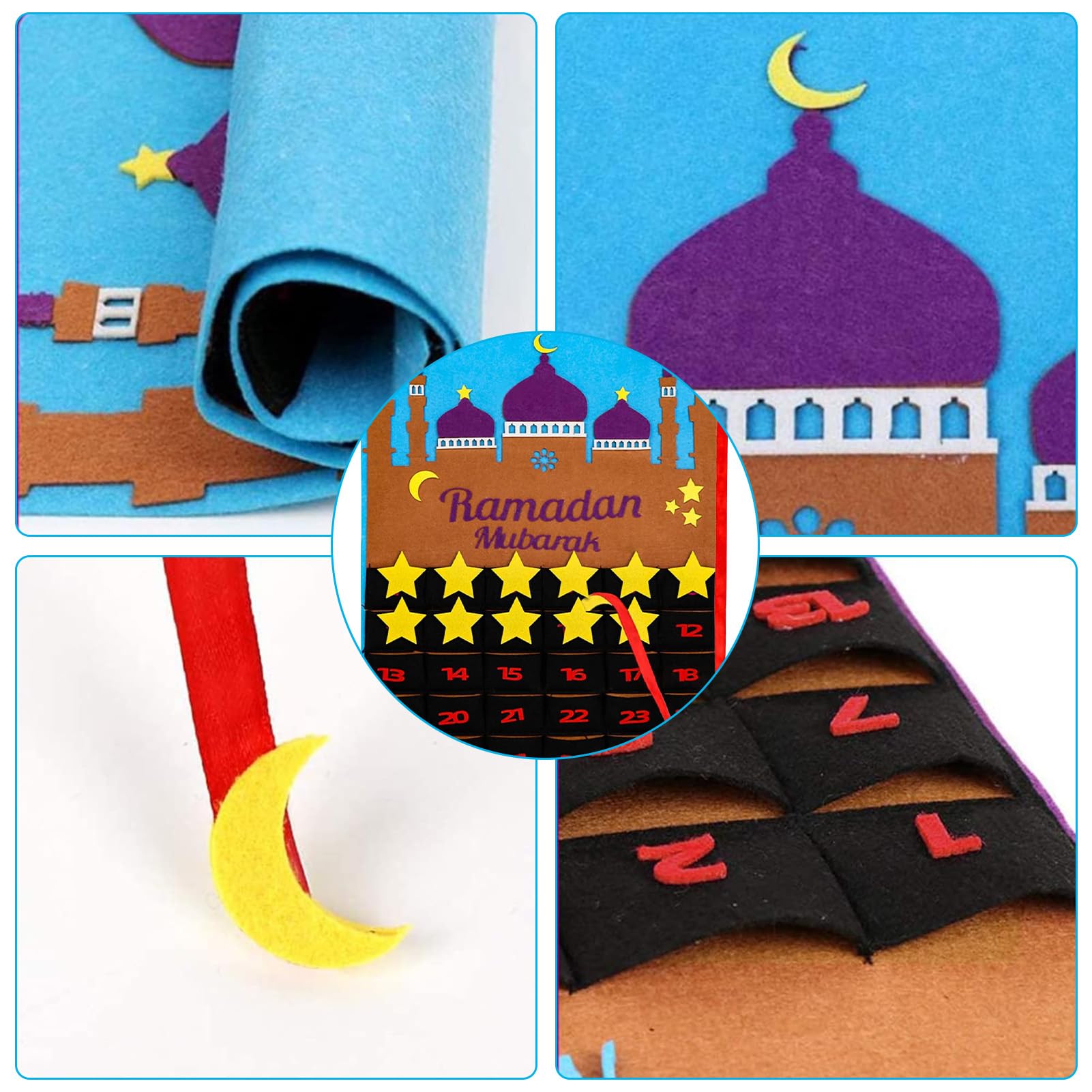 Calendrier Avent Ramadan 30 Boîtes - Compte à Rebours Aïd - Décoration Mosquée Noir Et Or