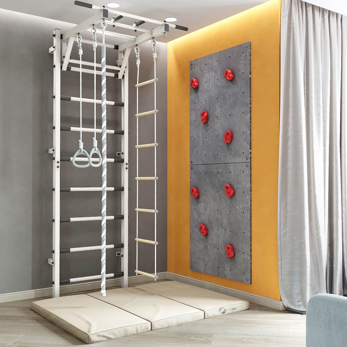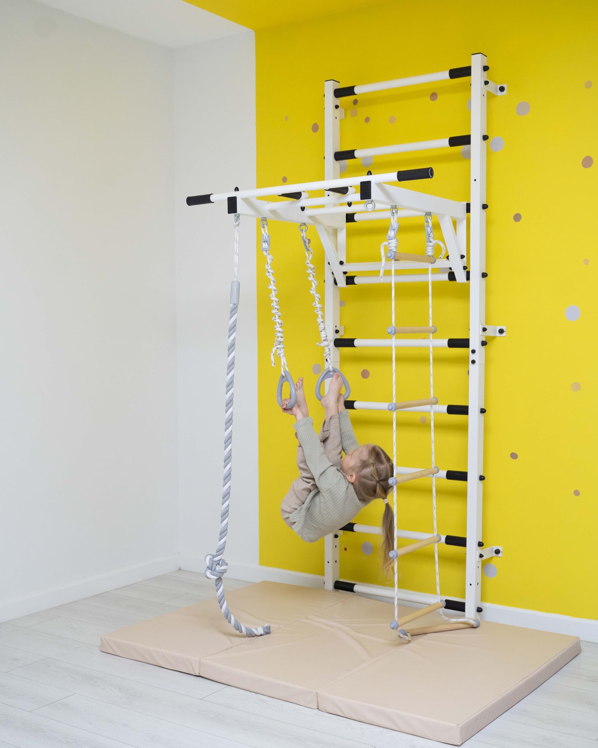 Espalier Mural Jeflex JCM8 Avec Barre De Traction Réglable - Station Fitness Enfants Et Adultes - Corde Anneaux Inclus