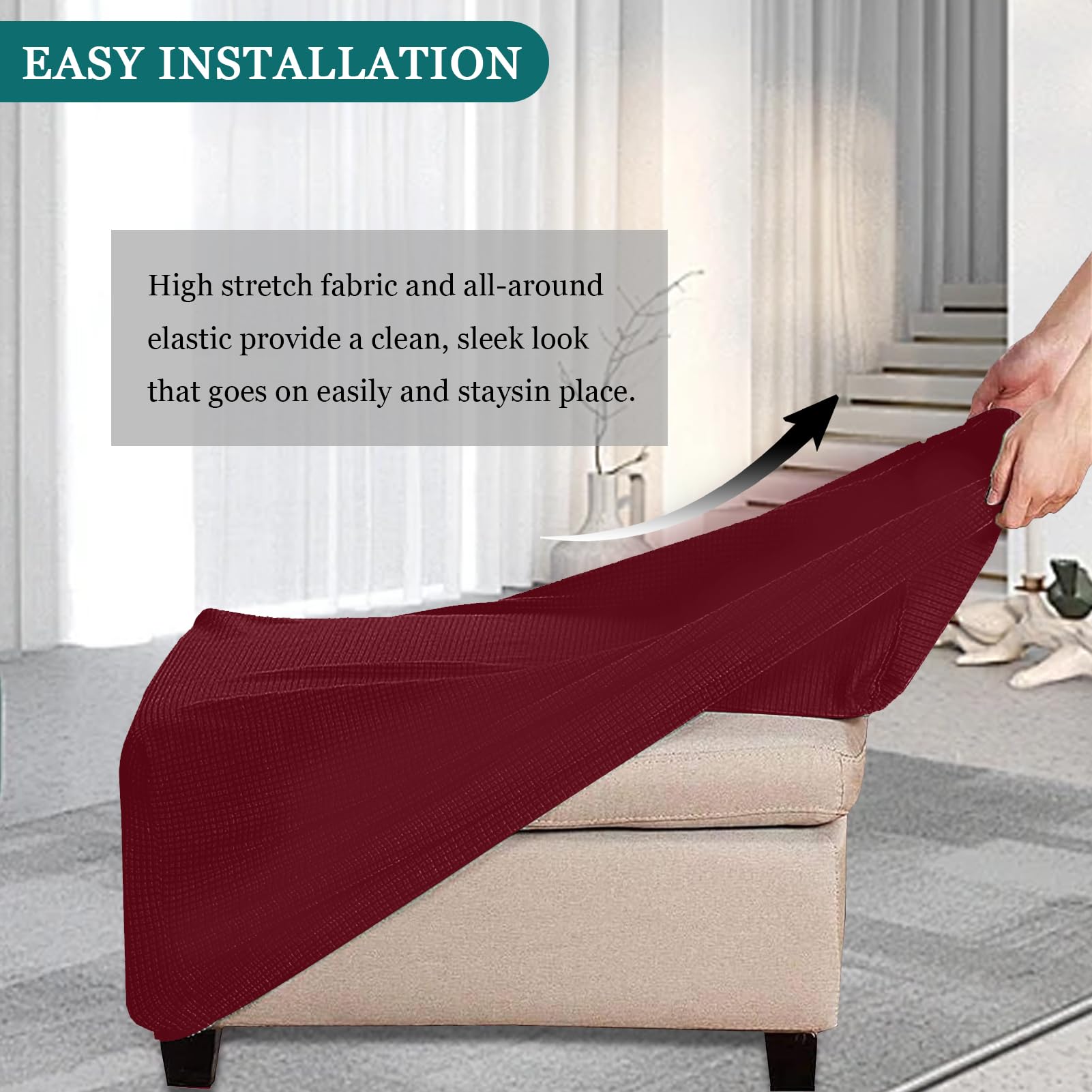 Housse Pouf Rectangulaire WINS - Tissu Extensible Polyester, Protection Meuble