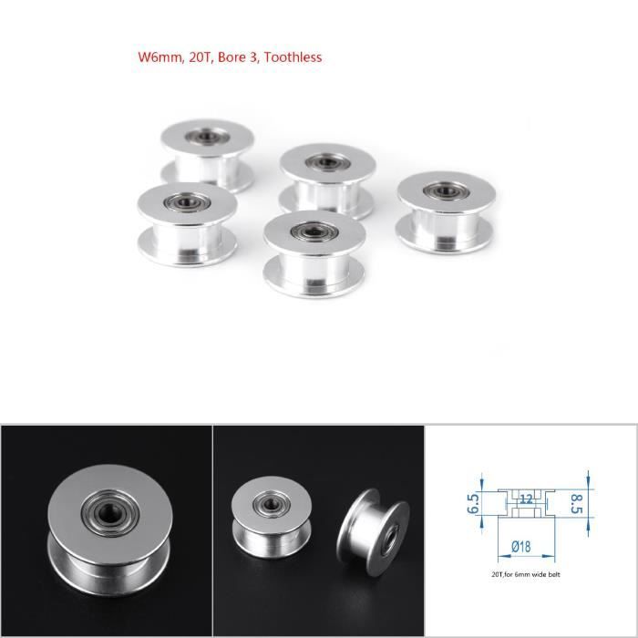 5 Poulies Renvoi 20 Dents Sans Dent Aluminium 5mm - Pour Courroie 10mm Imprimante 3D WINSINN