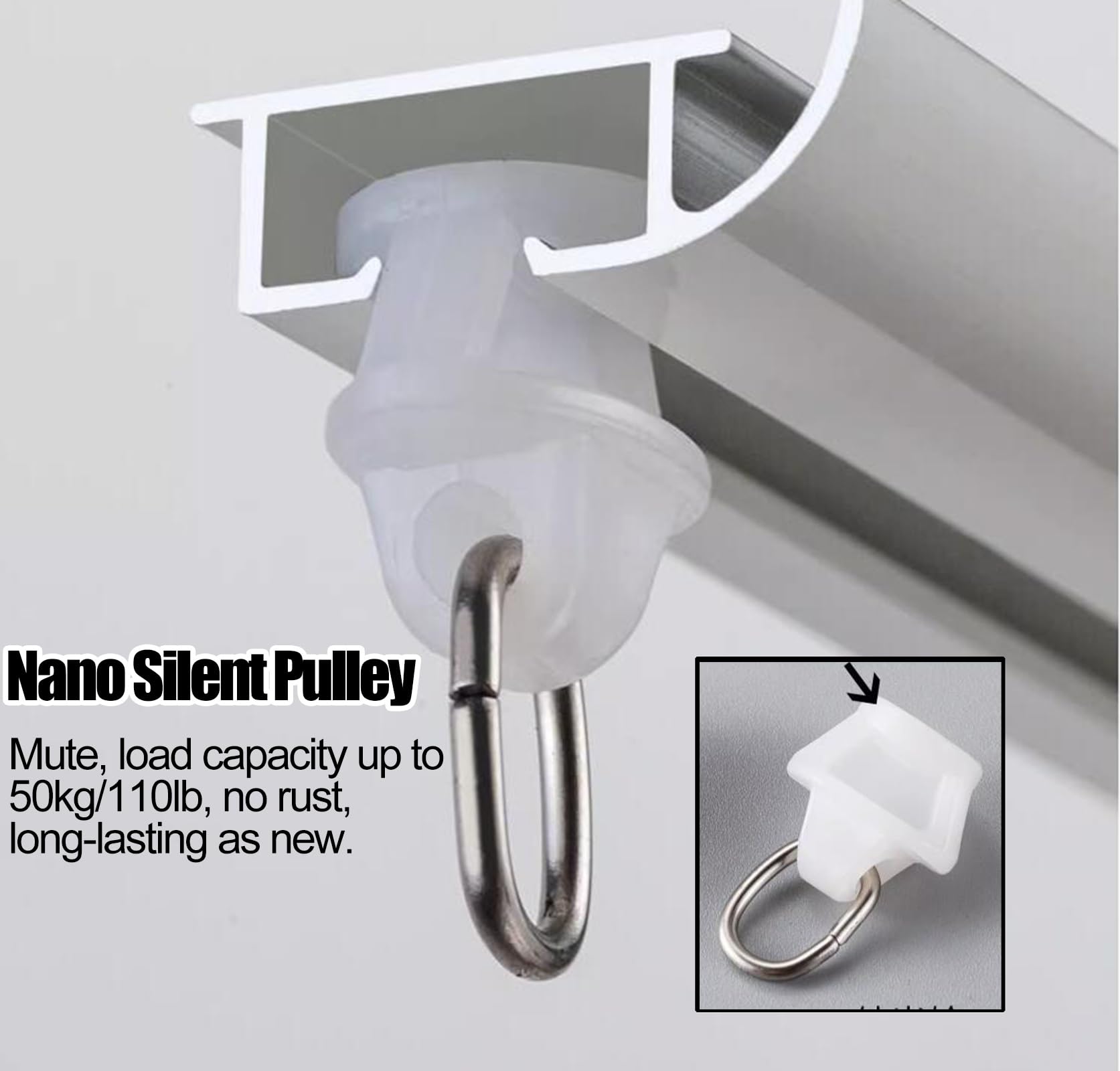 Système Rideaux Surface Blanc - Rail Et Chariot Velcro Facile à Installer