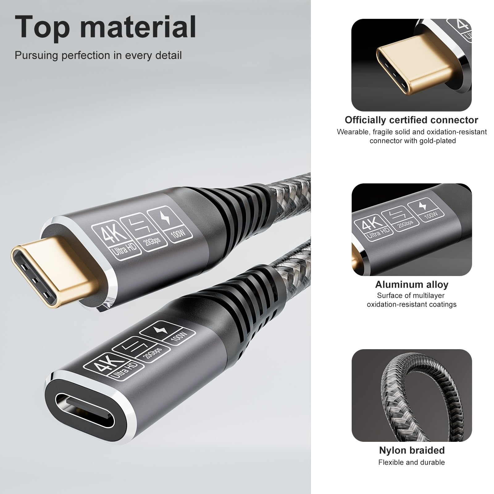 Câble USB-C Vers USB-C 4m - 100W 20Gbps - Charge Rapide - 4K 60Hz - Compatible Multi-appareils